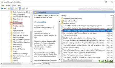 - Di panel kanan, temukan dan klik dobel pada policy Turn off the caching of thumbnails in hidden thumbs.db files.